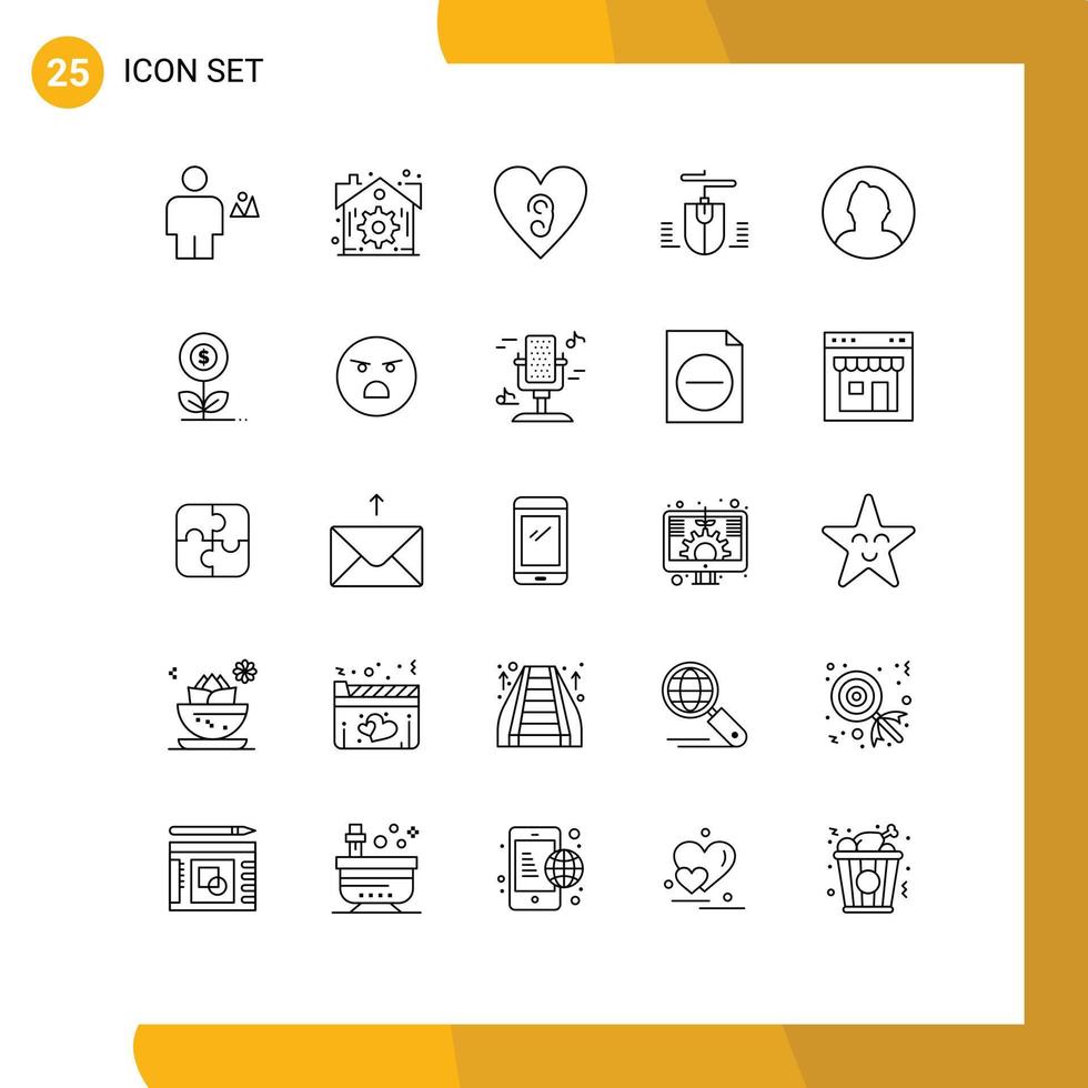 Pictogram Set of 25 Simple Lines of user man ear avatar computer Editable Vector Design Elements