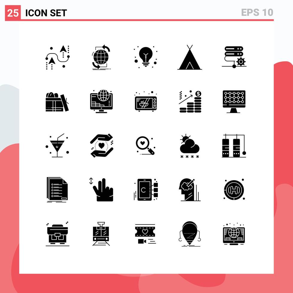 Set of 25 Modern UI Icons Symbols Signs for database tent network nature tips Editable Vector Design Elements