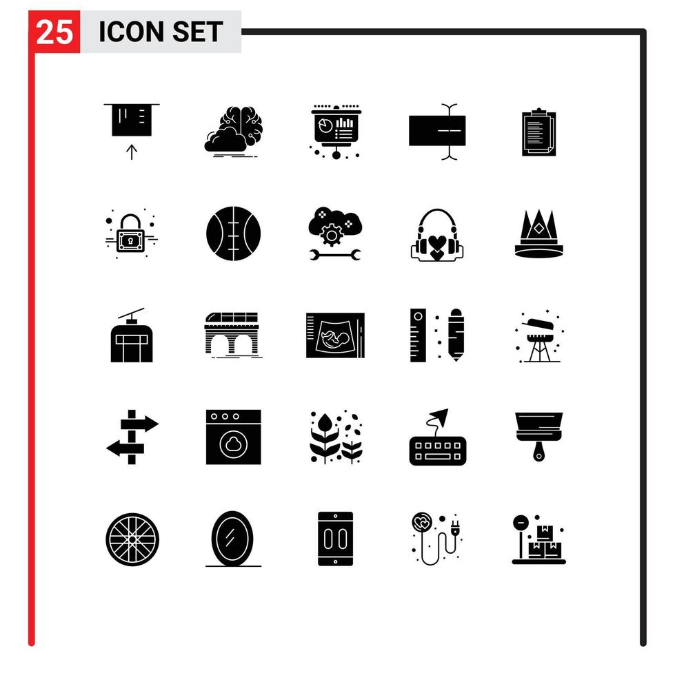 Pack of 25 creative Solid Glyphs of report card input business field presentation Editable Vector Design Elements