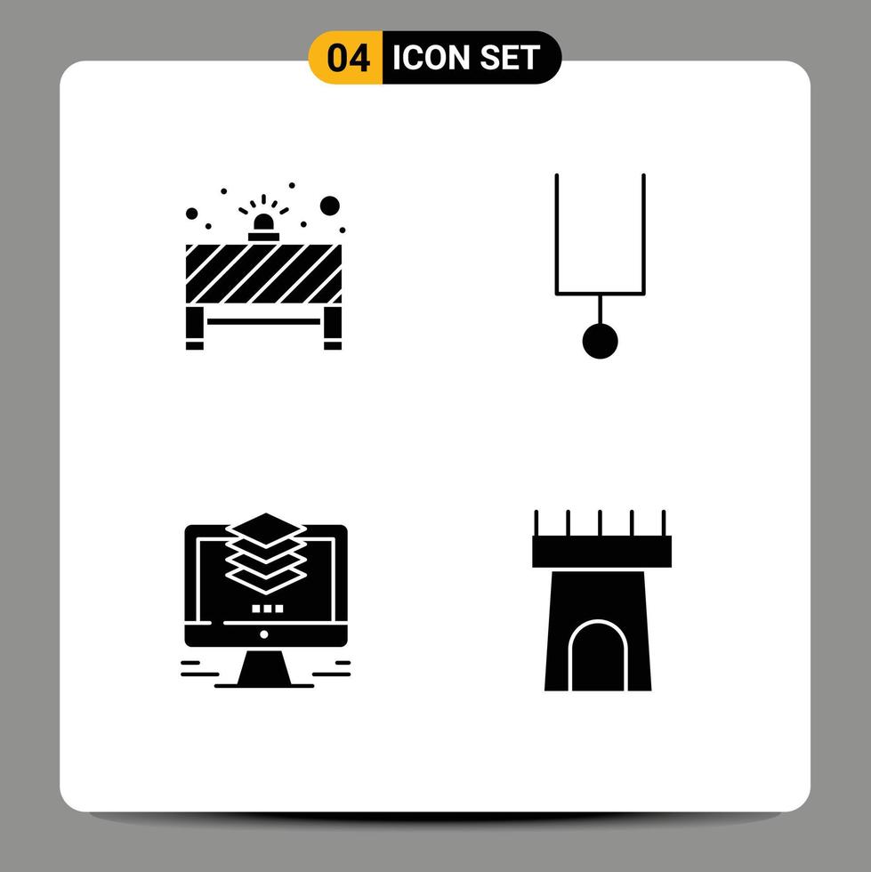 Pack of 4 Modern Solid Glyphs Signs and Symbols for Web Print Media such as board file red light tuning fork duplicate Editable Vector Design Elements