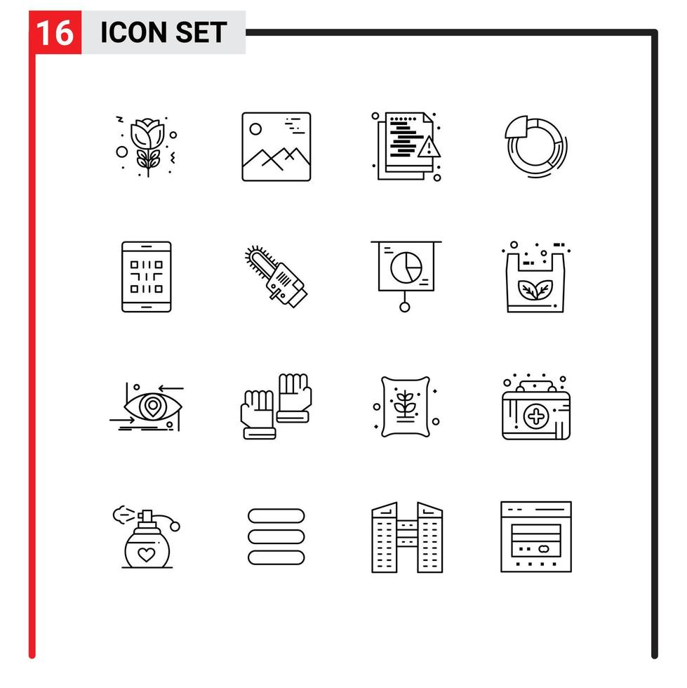 User Interface Pack of 16 Basic Outlines of mobile chart hacker pie graph Editable Vector Design Elements