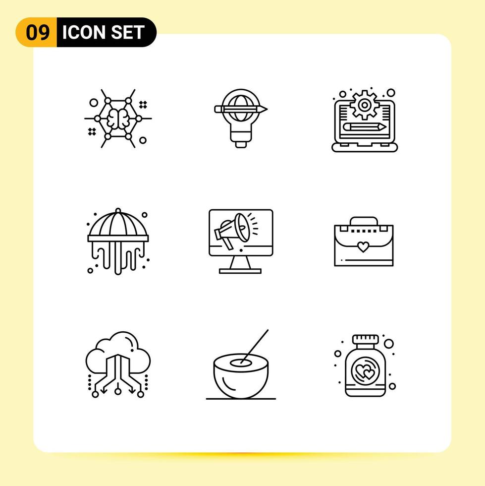 Editable Vector Line Pack of 9 Simple Outlines of speaker park bulb shower management system Editable Vector Design Elements Free Vector and Free SVG