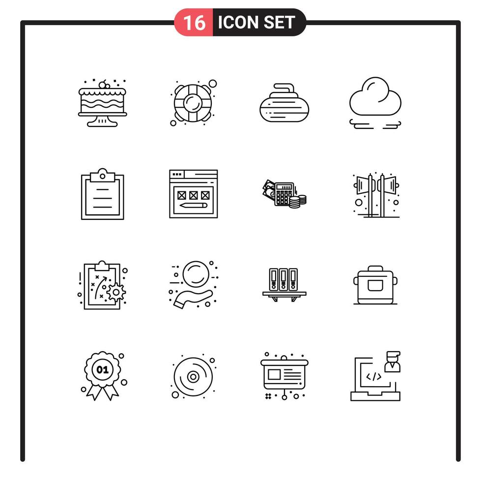 16 Universal Outlines Set for Web and Mobile Applications text clipboard bowls crescent wind Editable Vector Design Elements