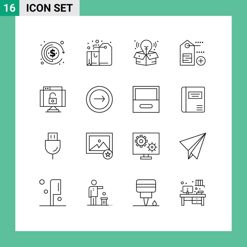 16 Universal Outlines Set for Web and Mobile Applications security lock creative data label Editable Vector Design Elements