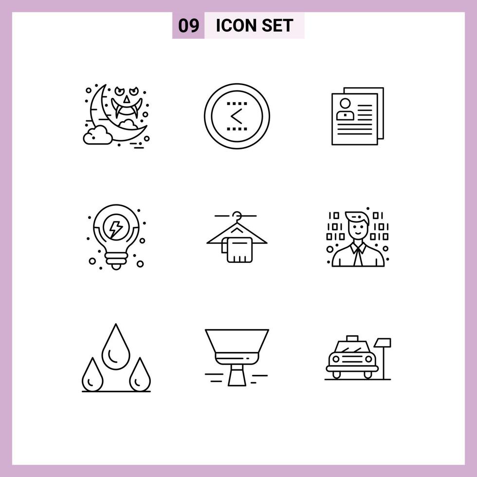 Group of 9 Modern Outlines Set for seo solution idea previous personal delete Editable Vector Design Elements Free Vector