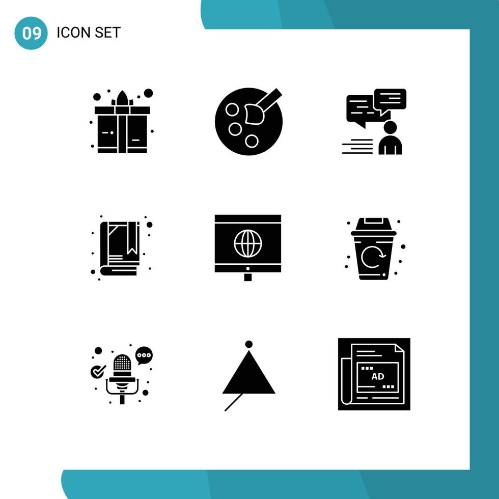 9 User Interface Solid Glyph Pack of modern Signs and Symbols of city global support computer booklet Editable Vector Design Elements