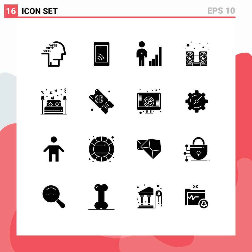 Editable Vector Line Pack of 16 Simple Solid Glyphs of speaker hardware service computer graph Editable Vector Design Elements Free Vector