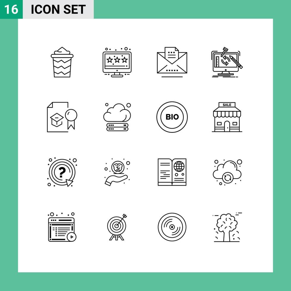 Pictogram Set of 16 Simple Outlines of diploma processing draft workshop project Editable Vector Design Elements Free Vector