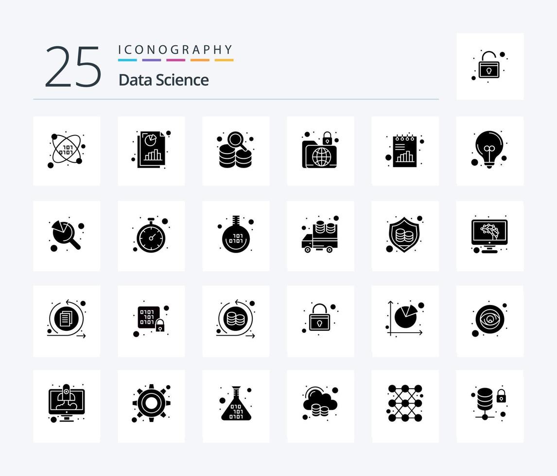 Data Science 25 Solid Glyph icon pack including analytics. secure. drive. infrastructure. folder vector