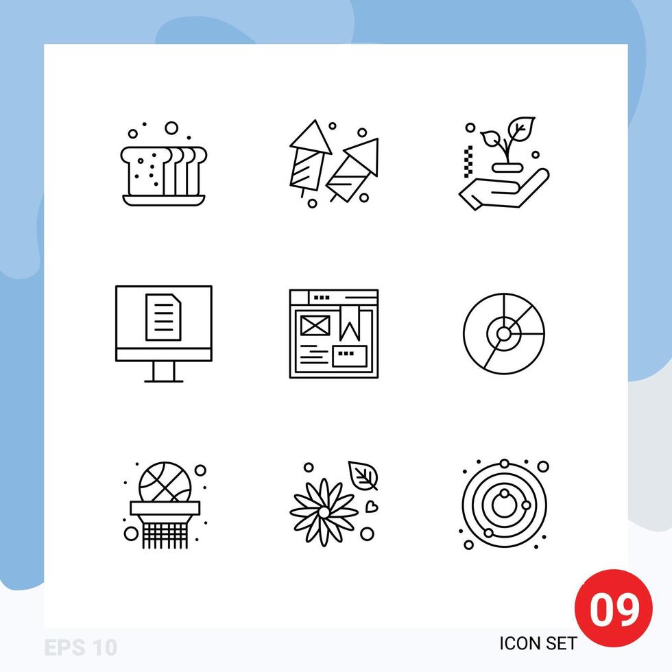 9 Universal Outline Signs Symbols of layout document diwali computer leaf Editable Vector Design Elements Free Vector