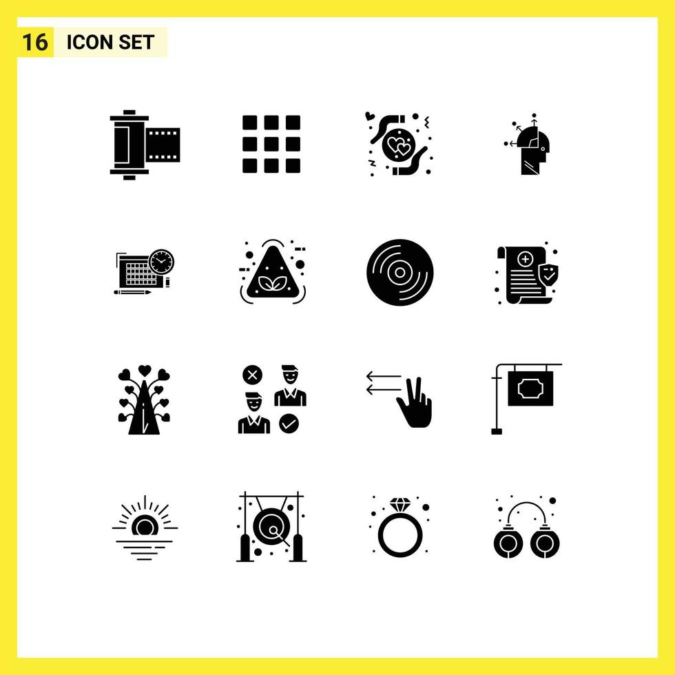 16 Universal Solid Glyph Signs Symbols of file art care mind programming user Editable Vector Design Elements