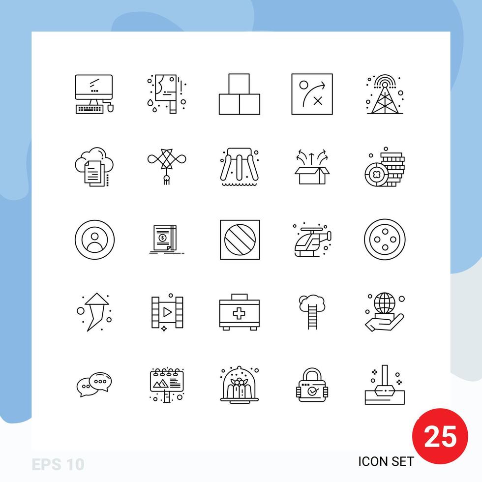 Set of 25 Commercial Lines pack for tower cellular blocks broadcasting algorithm Editable Vector Design Elements