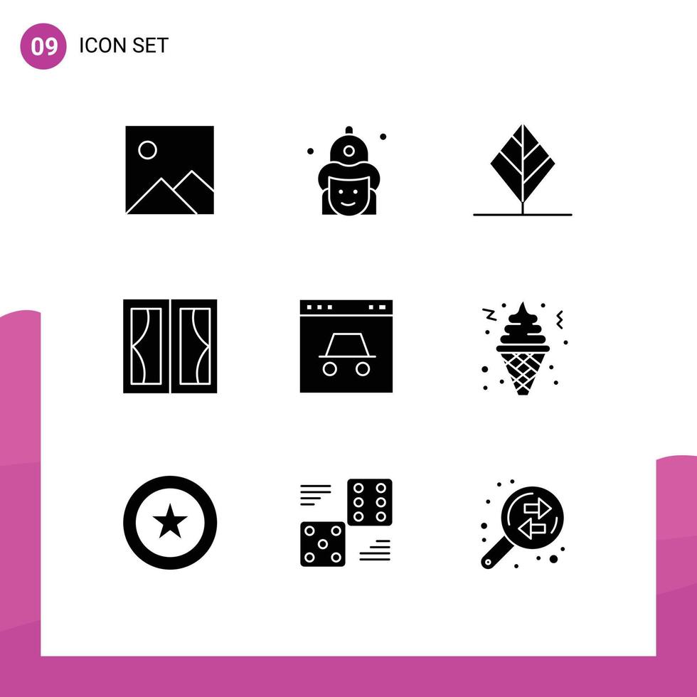 Set of 9 Vector Solid Glyphs on Grid for hacker home feather furniture buildings Editable Vector Design Elements Free Vector