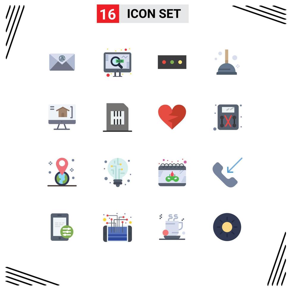 Set of 16 Modern UI Icons Symbols Signs for devices card security house computer Editable Pack of Creative Vector Design Elements Free Vector