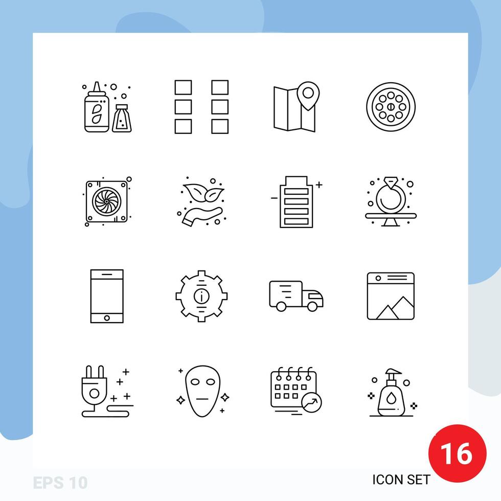 16 Universal Outlines Set for Web and Mobile Applications fan computer map plumbing mechanical Editable Vector Design Elements Free Vector