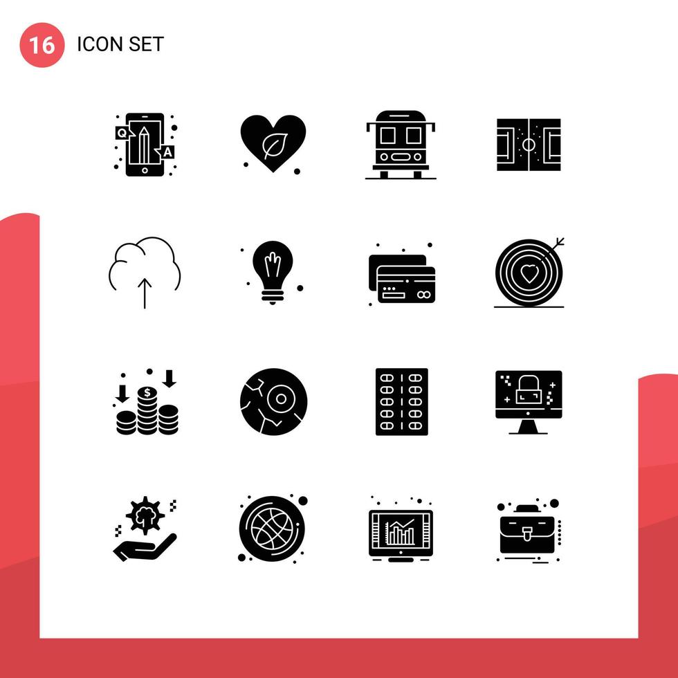 16 Solid Glyph concept for Websites Mobile and Apps cloud pitch save game field Editable Vector Design Elements