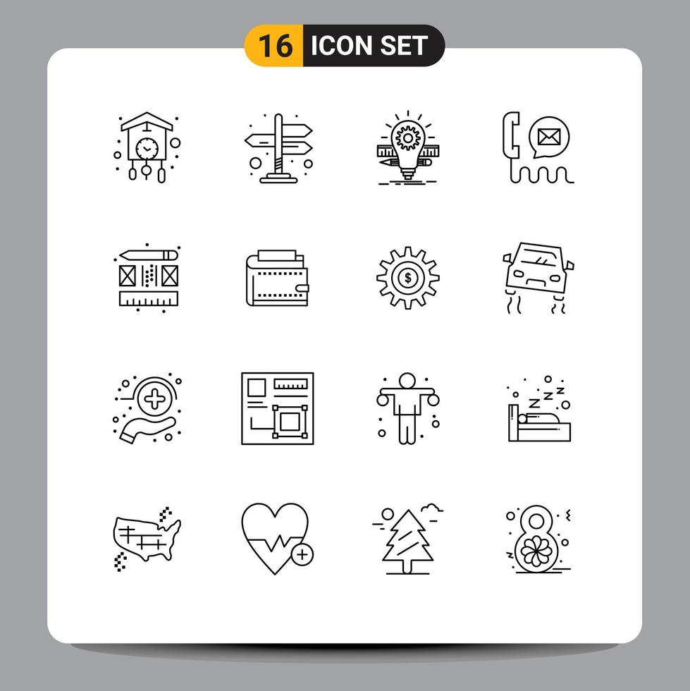 Editable Vector Line Pack of 16 Simple Outlines of mail email deveopment contact scale Editable Vector Design Elements
