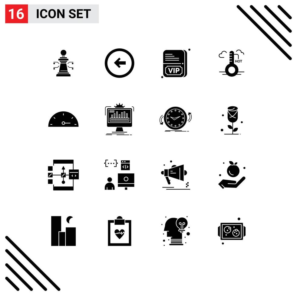 Pack of 16 Modern Solid Glyphs Signs and Symbols for Web Print Media such as performance update left weather temperature Editable Vector Design Elements