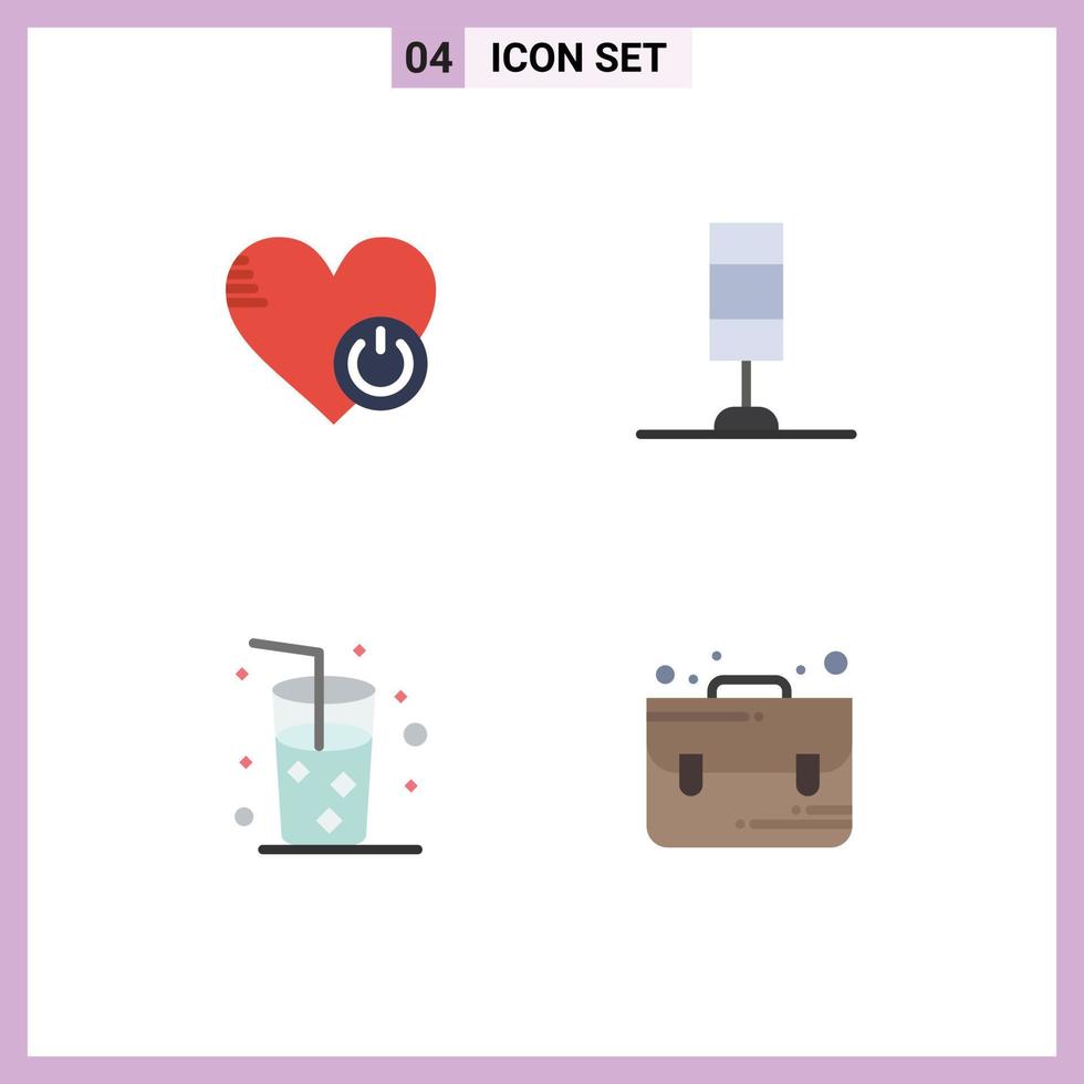 Set of 4 Vector Flat Icons on Grid for shutdown drink heart lamp bag Editable Vector Design Elements Free Vector