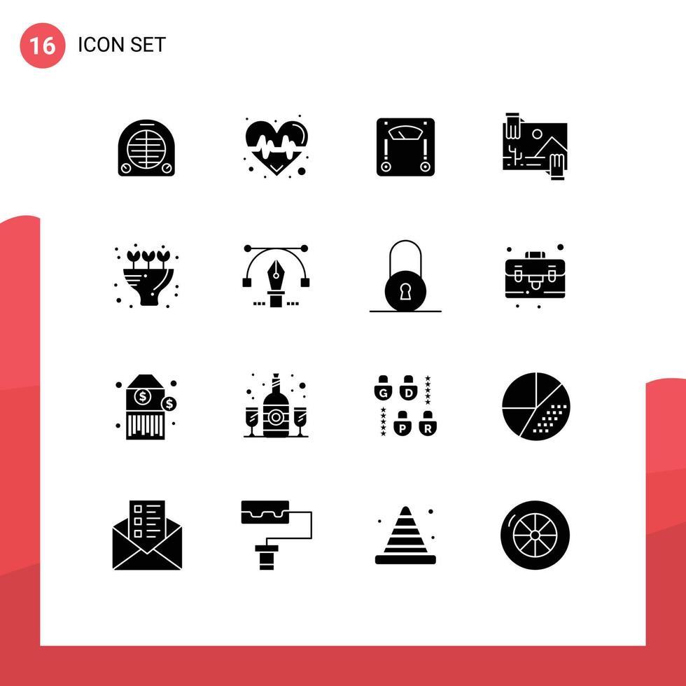 Pack of 16 Modern Solid Glyphs Signs and Symbols for Web Print Media such as bouquet image machine dividend contibution Editable Vector Design Elements Free Vector