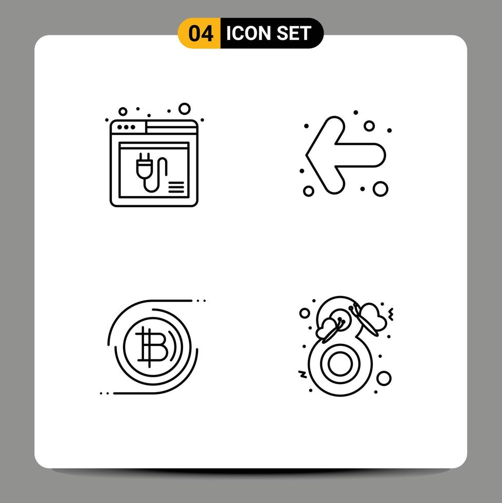 Mobile Interface Line Set of 4 Pictograms of browser bitcoin web back cryptocurrency Editable Vector Design Elements Free Vector and Free SVG
