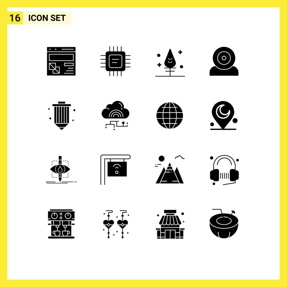 Mobile Interface Solid Glyph Set of 16 Pictograms of coding hardware processor gadget computers Editable Vector Design Elements