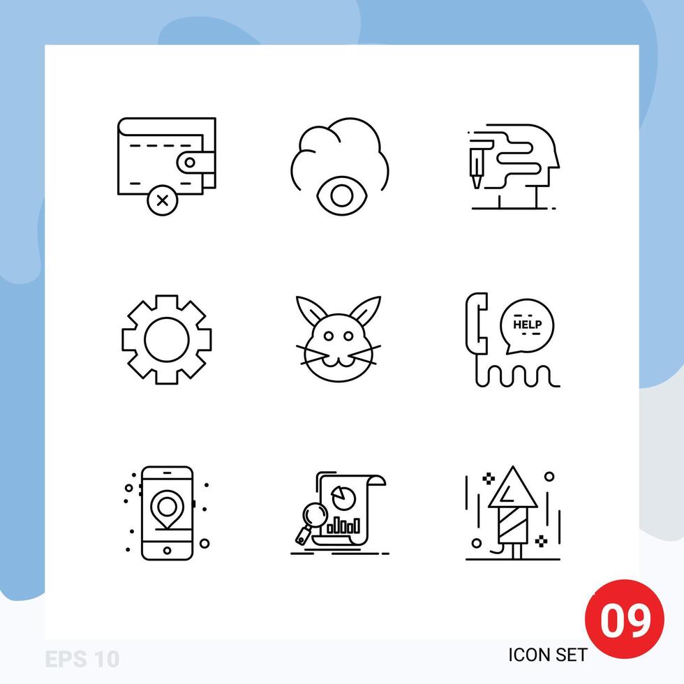 Set of 9 Vector Outlines on Grid for center rabbit big think easter bunny Editable Vector Design Elements Free Vector