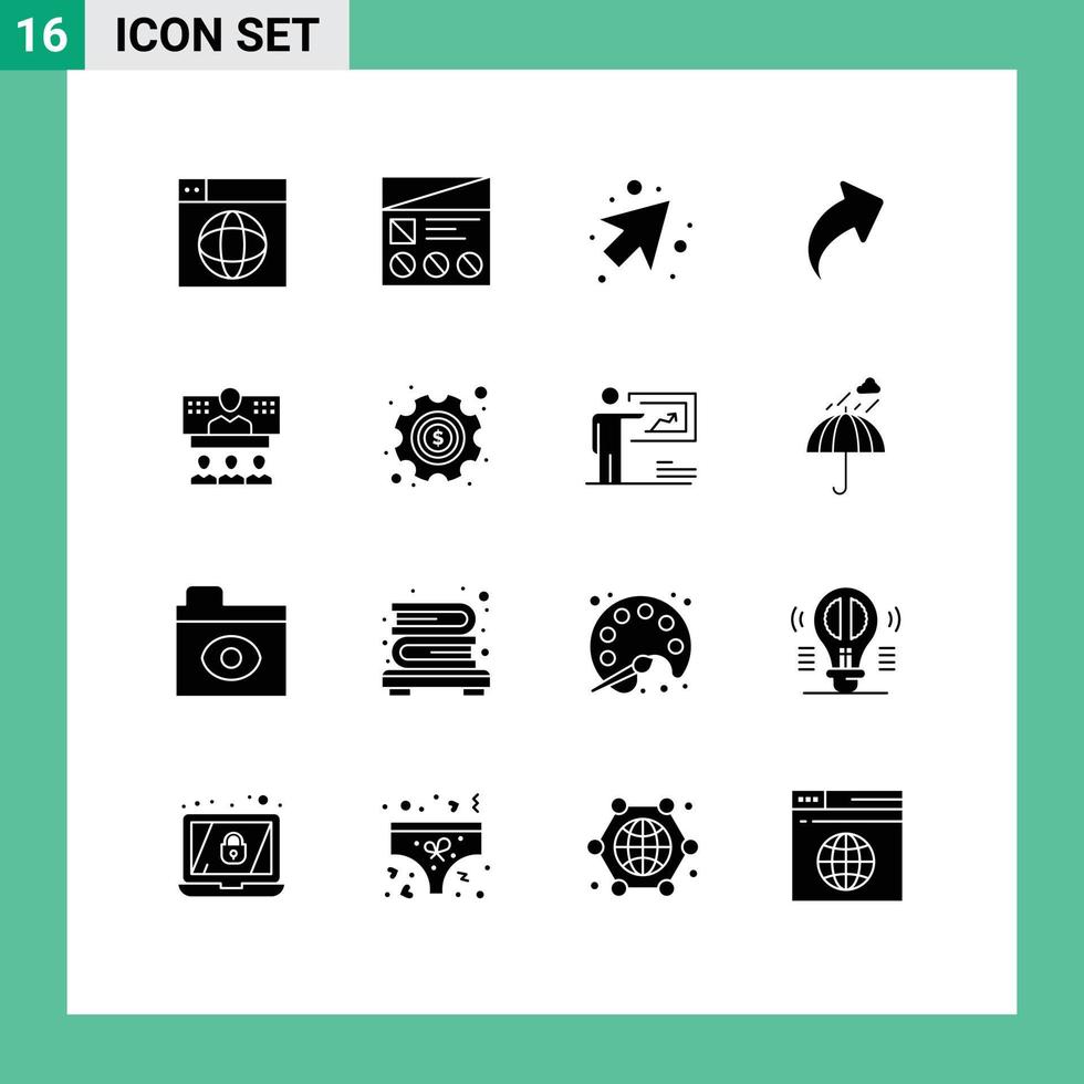 16 Universal Solid Glyphs Set for Web and Mobile Applications internet call ui business right Editable Vector Design Elements