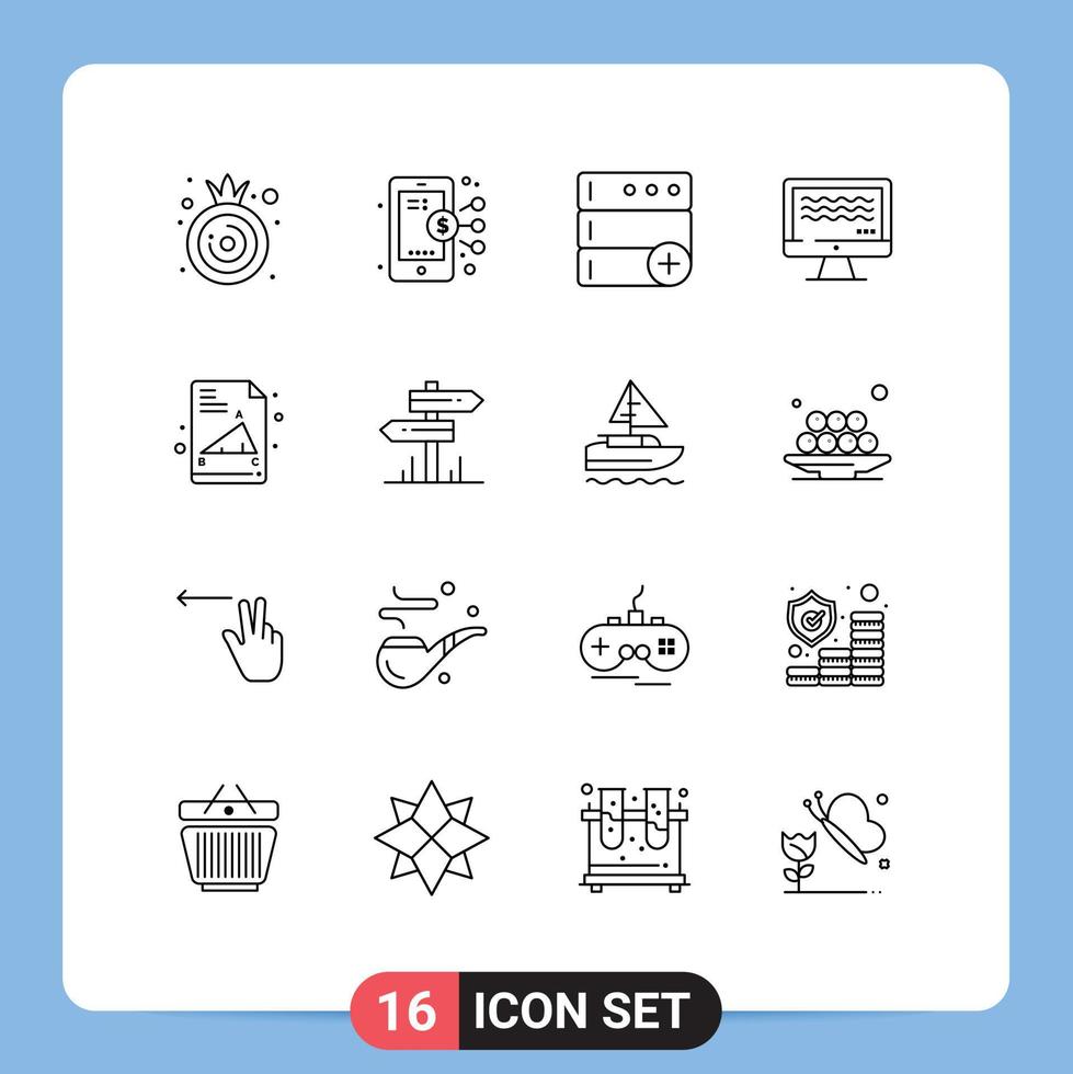 Modern Set of 16 Outlines and symbols such as direction education database back to school live streaming Editable Vector Design Elements