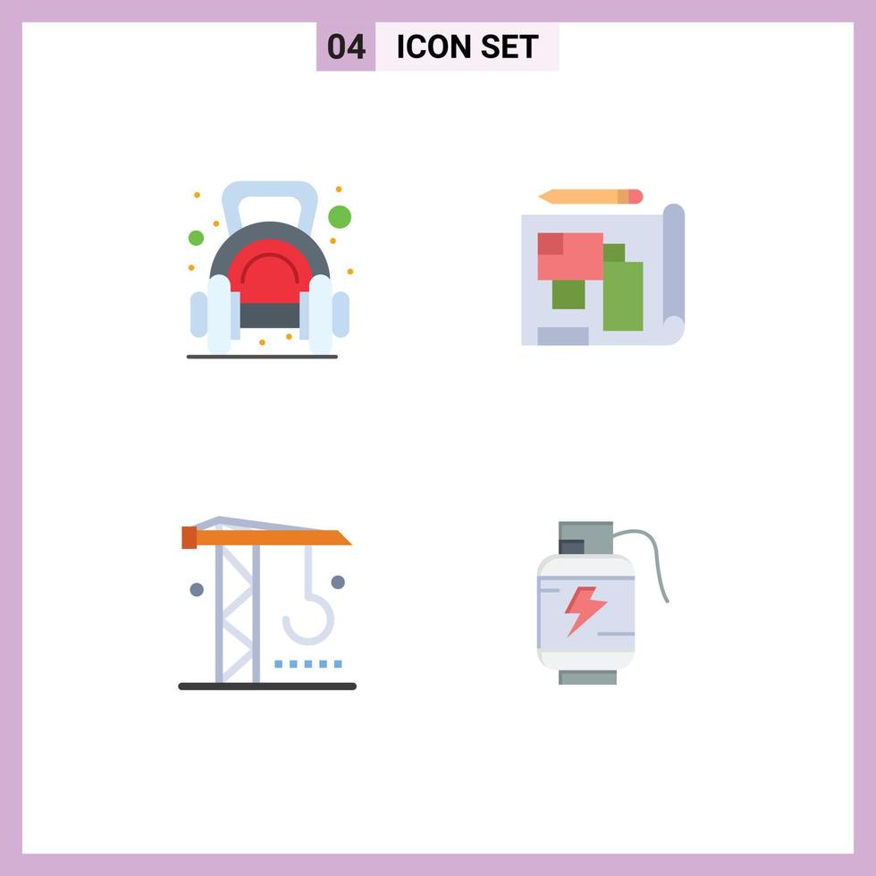 Modern Set of 4 Flat Icons and symbols such as exercise construction dumbbell blueprint machinery Editable Vector Design Elements