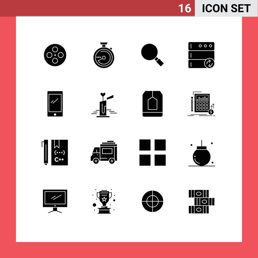 Pack of 16 Modern Solid Glyphs Signs and Symbols for Web Print Media such as mobile phone glass sync database Editable Vector Design Elements