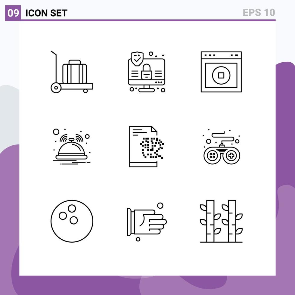 Pack of 9 creative Outlines of controller server web file notification Editable Vector Design Elements Free Vector