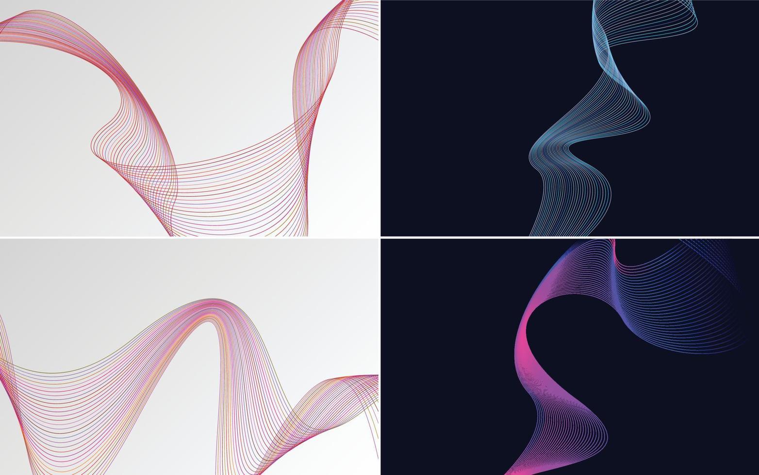 Set of 4 geometric wave pattern background Abstract waving line vector
