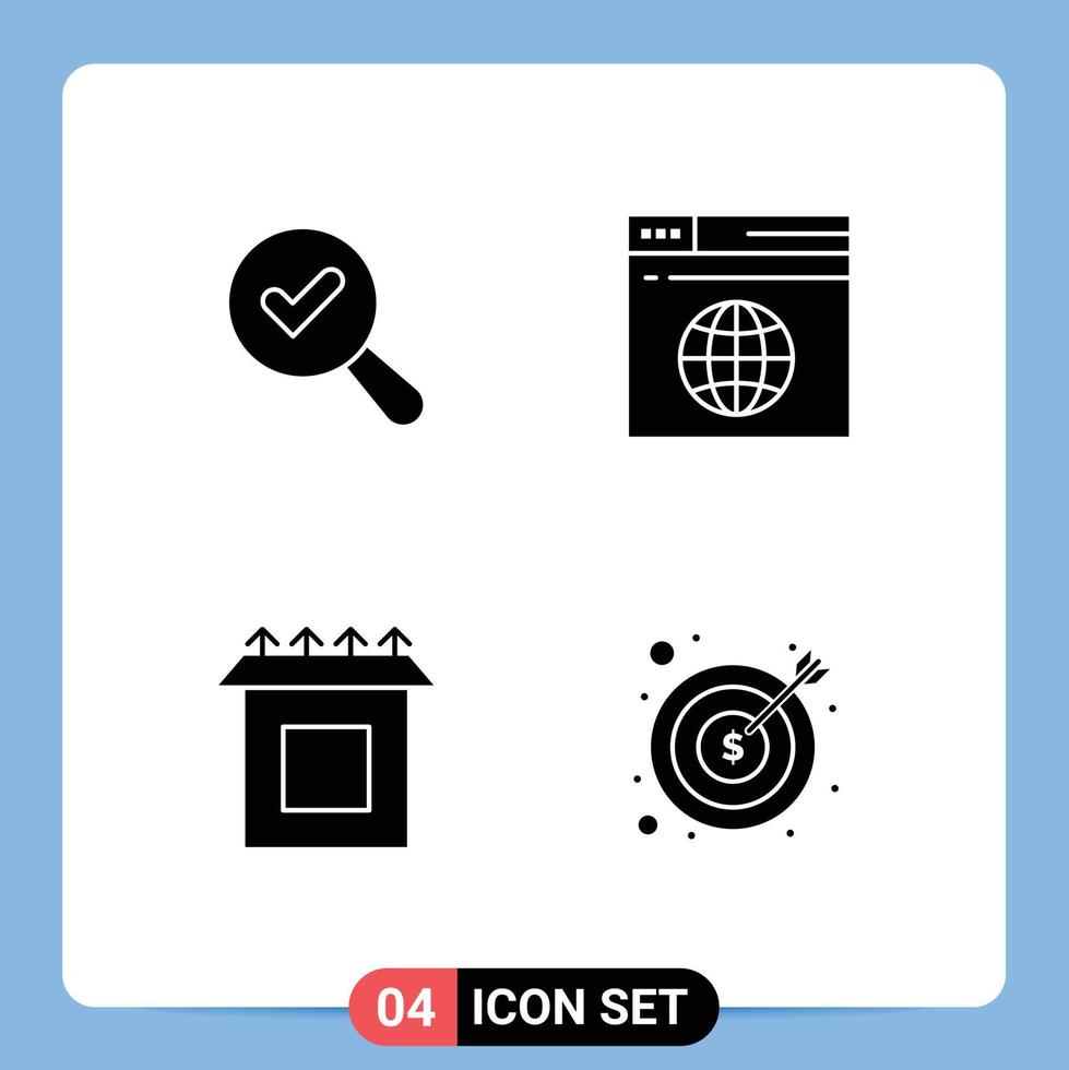 4 Universal Solid Glyph Signs Symbols of find setup internet web business Editable Vector Design Elements