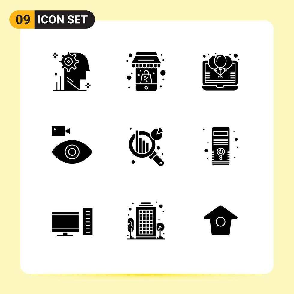 Set of 9 Vector Solid Glyphs on Grid for device camcorder mobile cam party Editable Vector Design Elements