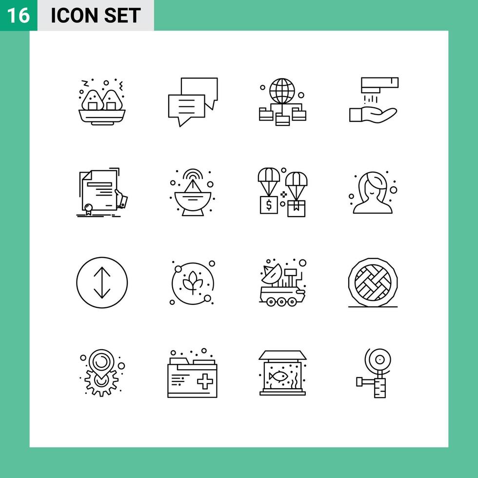 16 Universal Outlines Set for Web and Mobile Applications award degree connection certificate wash Editable Vector Design Elements