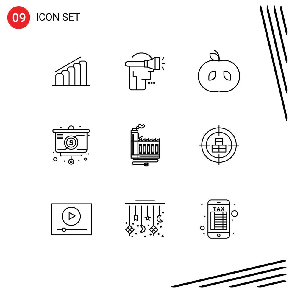 9 Outline concept for Websites Mobile and Apps energy consumption apple money strategy Editable Vector Design Elements