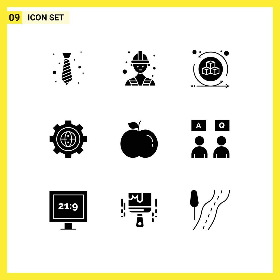 Mobile Interface Solid Glyph Set of 9 Pictograms of apple development environment design browser Editable Vector Design Elements Free Vector