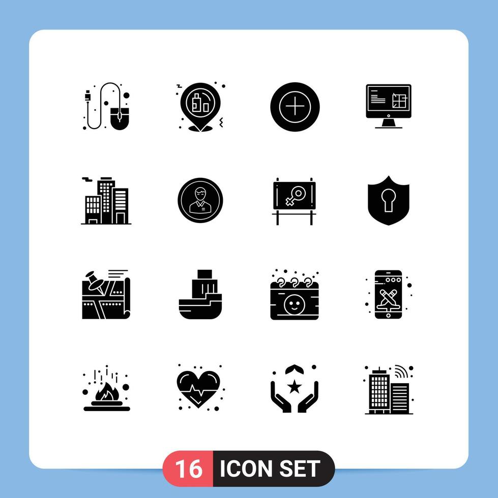16 User Interface Solid Glyph Pack of modern Signs and Symbols of business design add lcd construction Editable Vector Design Elements