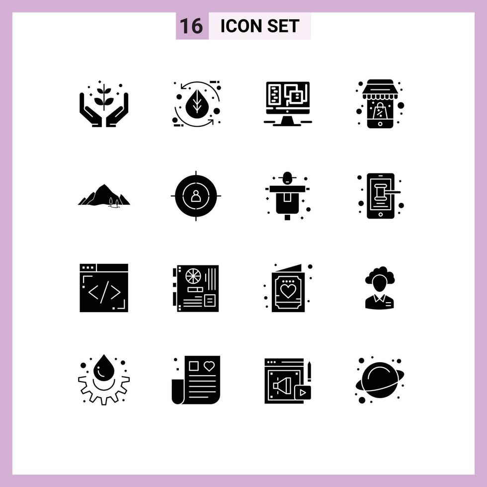 16 Universal Solid Glyphs Set for Web and Mobile Applications mobile online leaf shopping window Editable Vector Design Elements