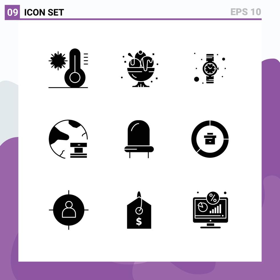 Mobile Interface Solid Glyph Set of 9 Pictograms of diode network sweet database cloud Editable Vector Design Elements Free Vector