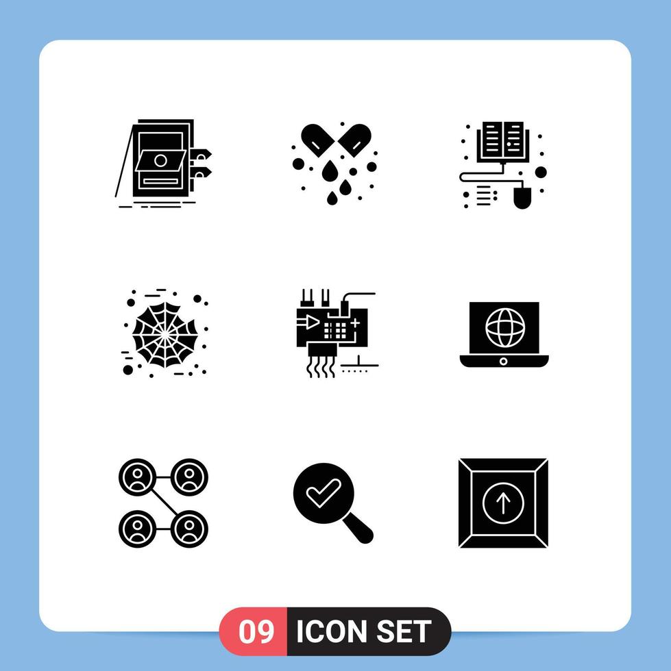 9 Universal Solid Glyphs Set for Web and Mobile Applications electronics assemble medicine web halloween Editable Vector Design Elements