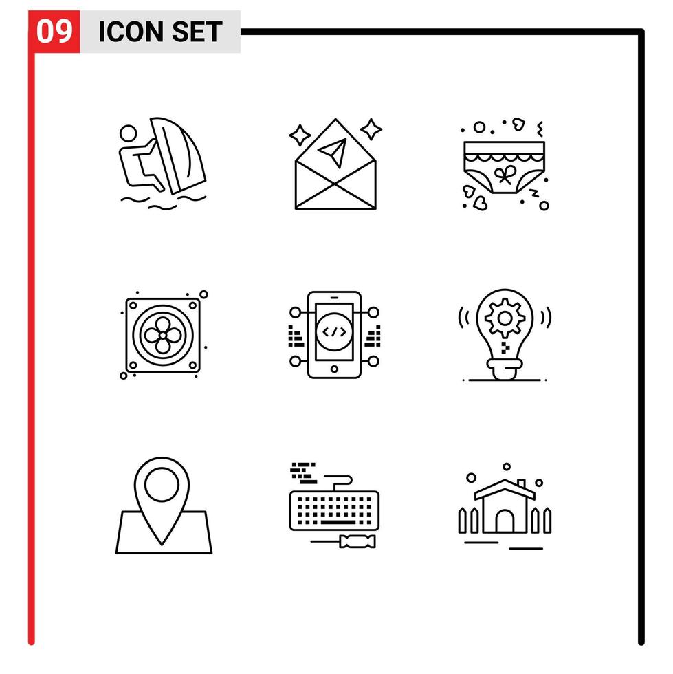 9 Universal Outlines Set for Web and Mobile Applications coding fan open computer underwear Editable Vector Design Elements