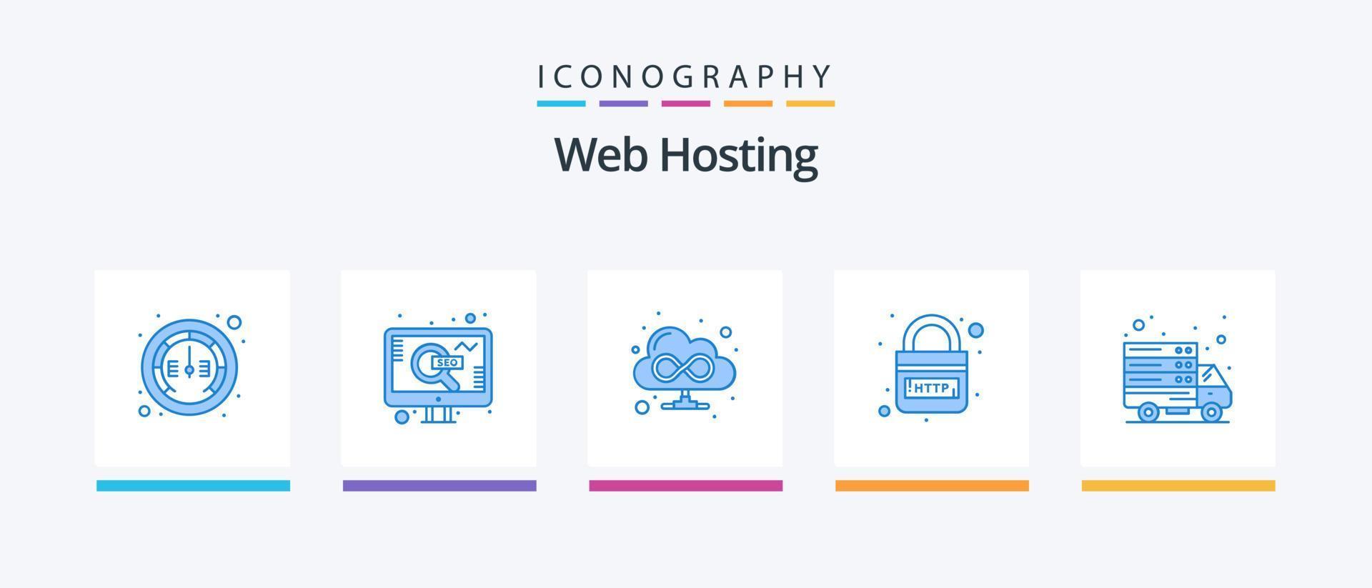Web Hosting Blue 5 Icon Pack Including online. security. browser. link. http. Creative Icons Design vector