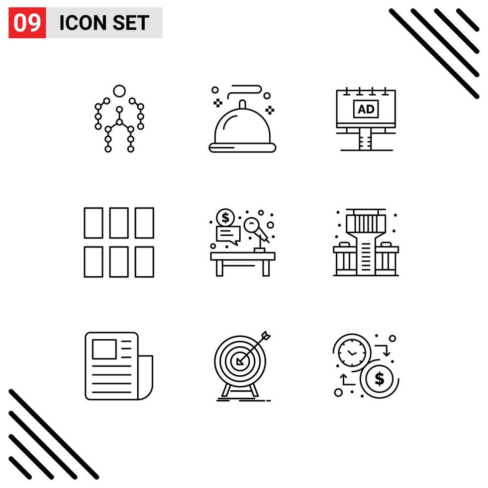 Mobile Interface Outline Set of 9 Pictograms of layout frame service editing billboard Editable Vector Design Elements