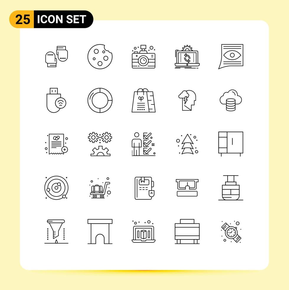 Group of 25 Lines Signs and Symbols for sync analysis food processing news Editable Vector Design Elements