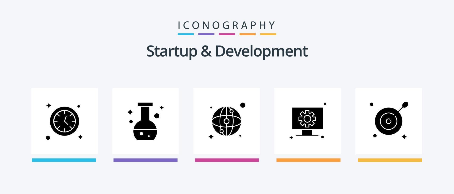 Startup And Develepment Glyph 5 Icon Pack Including . aim. map. target. setting. Creative Icons Design vector