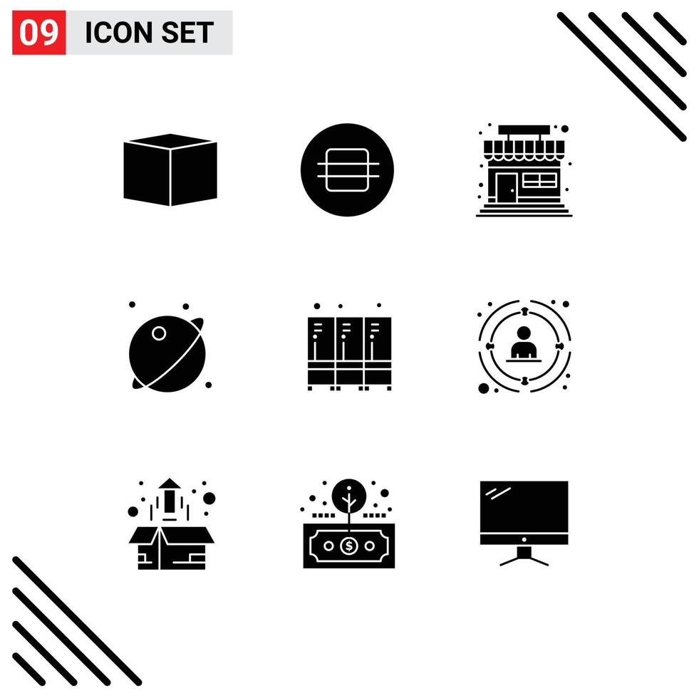Group of 9 Modern Solid Glyphs Set for locker security shop system planet Editable Vector Design Elements
