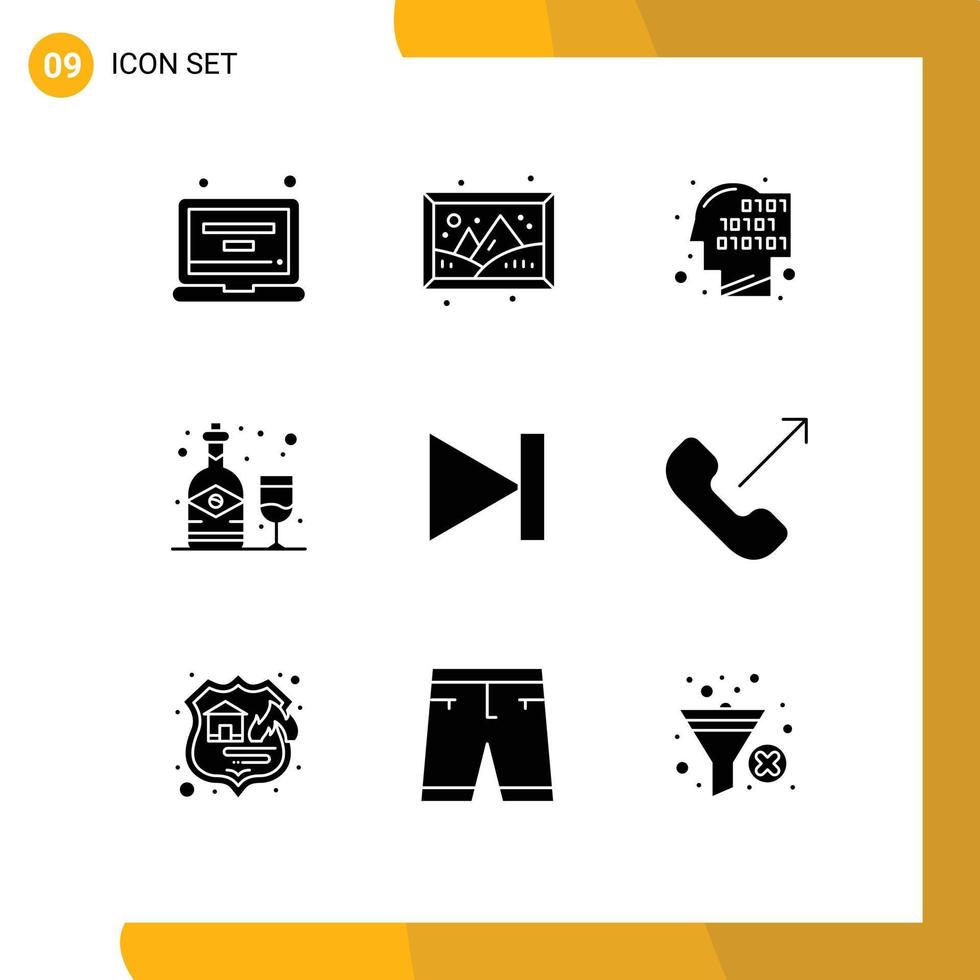 Universal Icon Symbols Group of 9 Modern Solid Glyphs of forward glass binary wine alcohol Editable Vector Design Elements