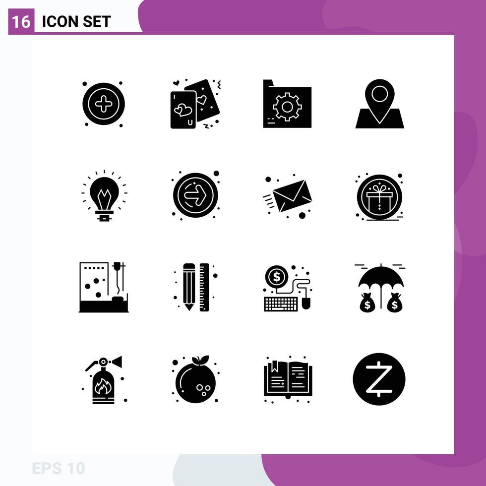 Modern Set of 16 Solid Glyphs and symbols such as creative location connect pointer file Editable Vector Design Elements
